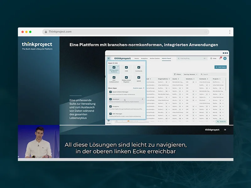 Die umfassenden Dienstleistungen erweitern die Produktpalette, so dass skalierbare, sichere und effiziente Lösungen innerhalb der Thinkproject-Plattform und darüber hinaus entstehen.