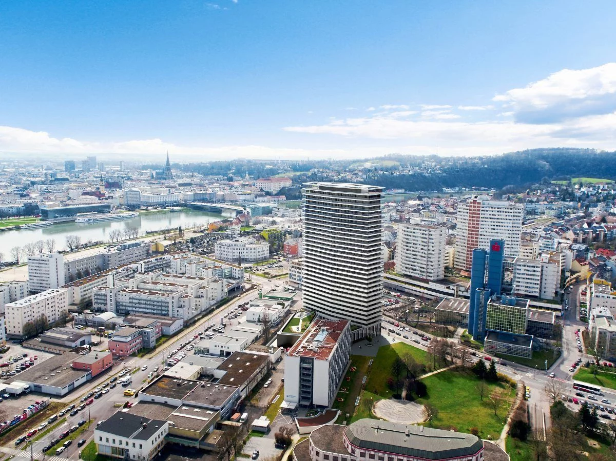 Der von den Architekten AllesWirdGut entworfene Bruckner Tower befindet sich auf dem ehemaligen Campus der Anton Bruckner Universität im Norden von Linz in unmittelbarer Nähe des Donau-Ufers. Dieser kürzlich fertiggestellte Wohnturm mit 31 Stockwerken bietet Raum für Wohnungen, Büroräume sowie für Betreuungs- und Bildungseinrichtungen, von denen das umliegende Stadtviertel profitiert.