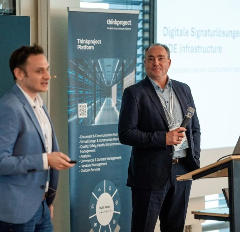 Beste User Experience, Flexibilität und Individualisierung nach Projektbedarf: Sven Söhlmann, Director Services bei Thinkproject, freute sich, Ihnen Funktionsneuheiten und die Roadmap unserer CDE Infrastructure vorzustellen und Ihnen einen Einblick in die Sicherheitsstandards zu geben.