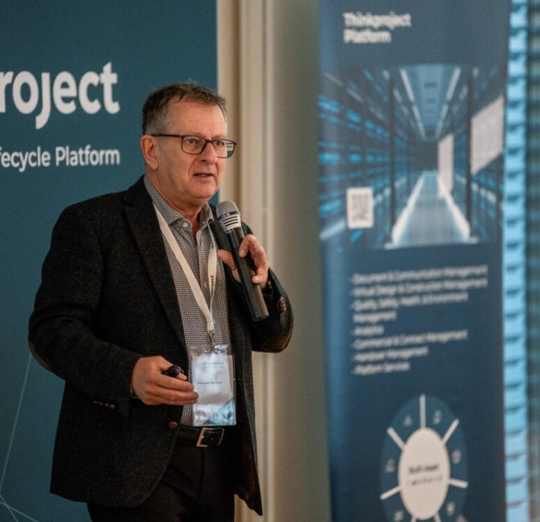 Zum Auftakt unserer Veranstaltung zeigte Alexander Strutzke, Director Enterprise Sales bei Thinkproject, in seinem Vortrag wie Kunden unsere Built Asset Lifecycle Platform nutzen und wie die Integration über die einzelnen Lebenszyklusphasen aktuell und zukünftig hinausgeht.