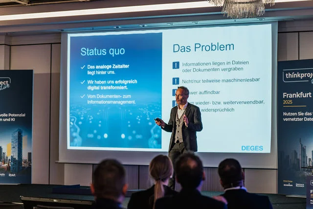 Die aufgezeichneten Vorträge von Thinkproject Live Frankfurt 2025 werden in Kürze verfügbar sein. Freuen Sie sich auf spannende Einblicke und praxisnahe Inspirationen rund um vernetzte Daten, digitale Transformation und KI-Innovation.