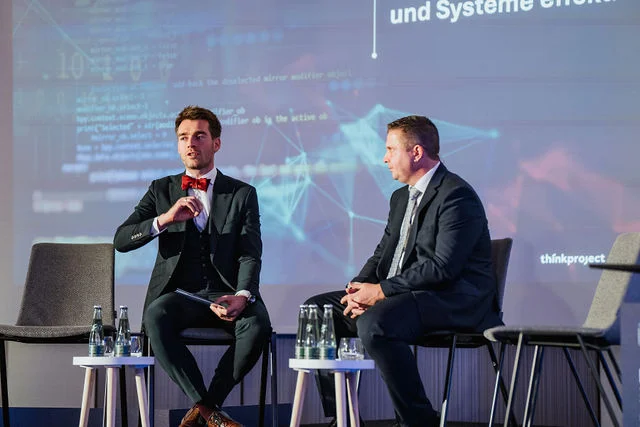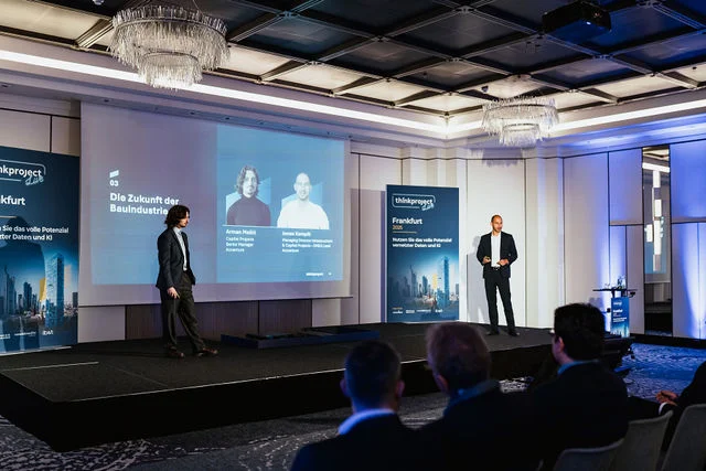 CTO Ralf Hundhammer und Director Product Marketing Max Fritze zeigten die nächste Evolutionsstufe der Thinkproject Plattform. Neue Funktionen, Weiterentwicklungen und Innovationen im Bereich Datenmanagement und Plattformdienste machen Künstliche Intelligenz über den gesamten Lebenszyklus von Bauwerken nutzbar. Anhand konkreter Use Cases demonstrierten sie, wie AI-Funktionalitäten Effizienz, Automatisierung und Entscheidungsunterstützung auf ein neues Niveau heben.