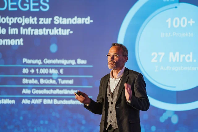 Wie gelingt nachhaltige Infrastruktur im digitalen Zeitalter? Werner Breinig, Bereichsleiter Digitalisierung und IT bei DEGES, zeigte, warum Vertrauen in Daten, Lebenszyklus-Kontext und Automatisierung entscheidend sind. Im Fokus: der notwendige Wechsel vom Dokumenten- zum Informations-Management. DEGES demonstrierte, wie dieser Ansatz eine verlässliche Datenbasis schafft, die auch KI nutzbar macht – für schnelleres, sichereres und nachhaltigeres Bauen von Autobahnen und Infrastrukturen.