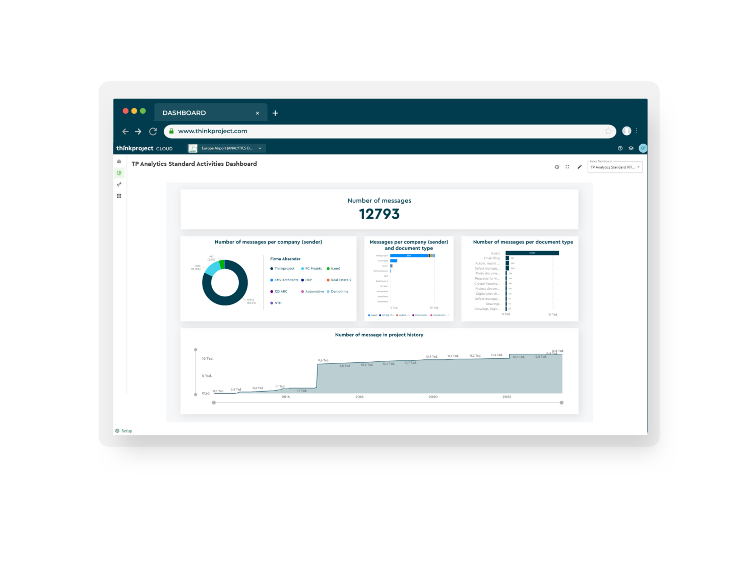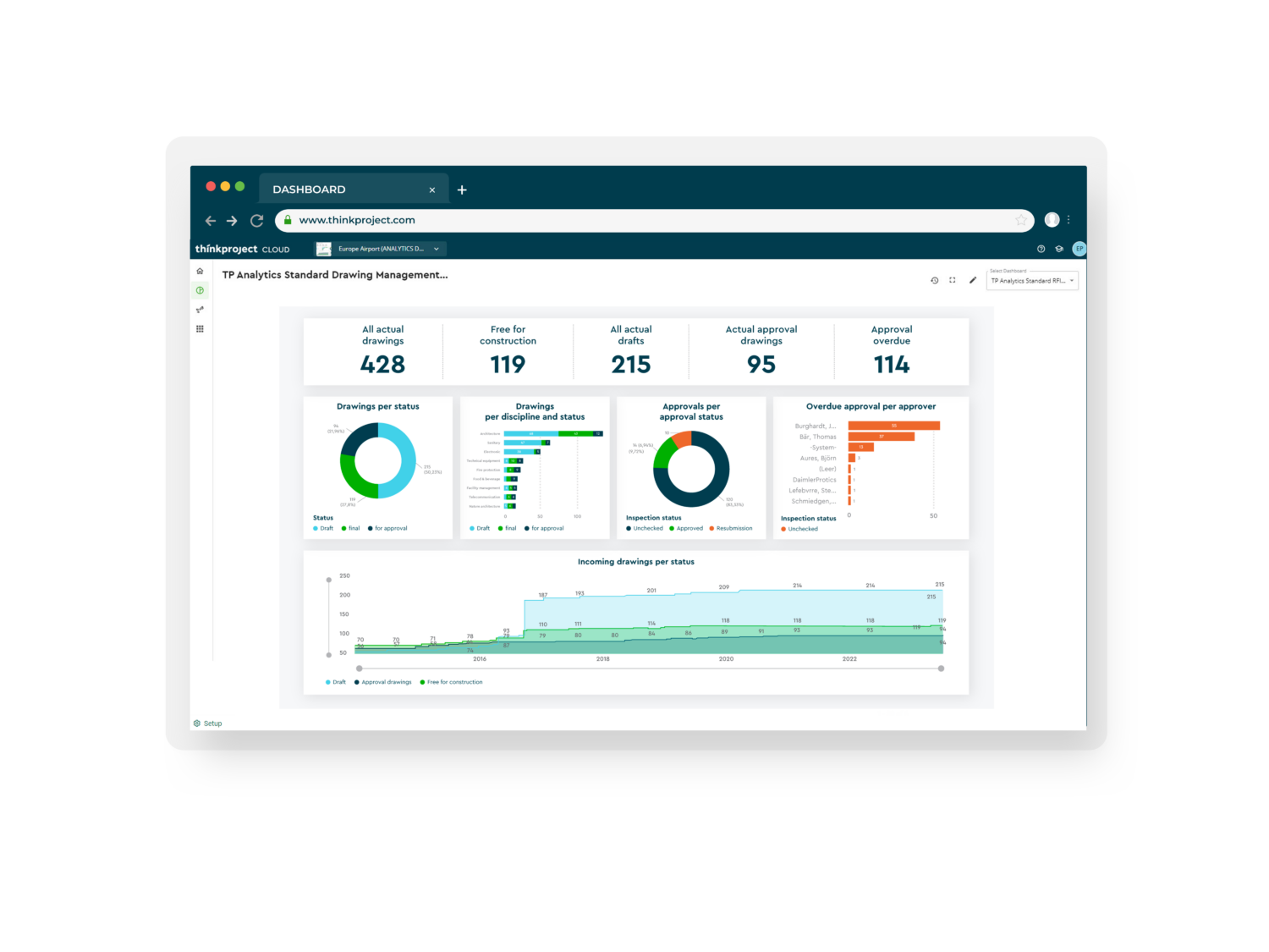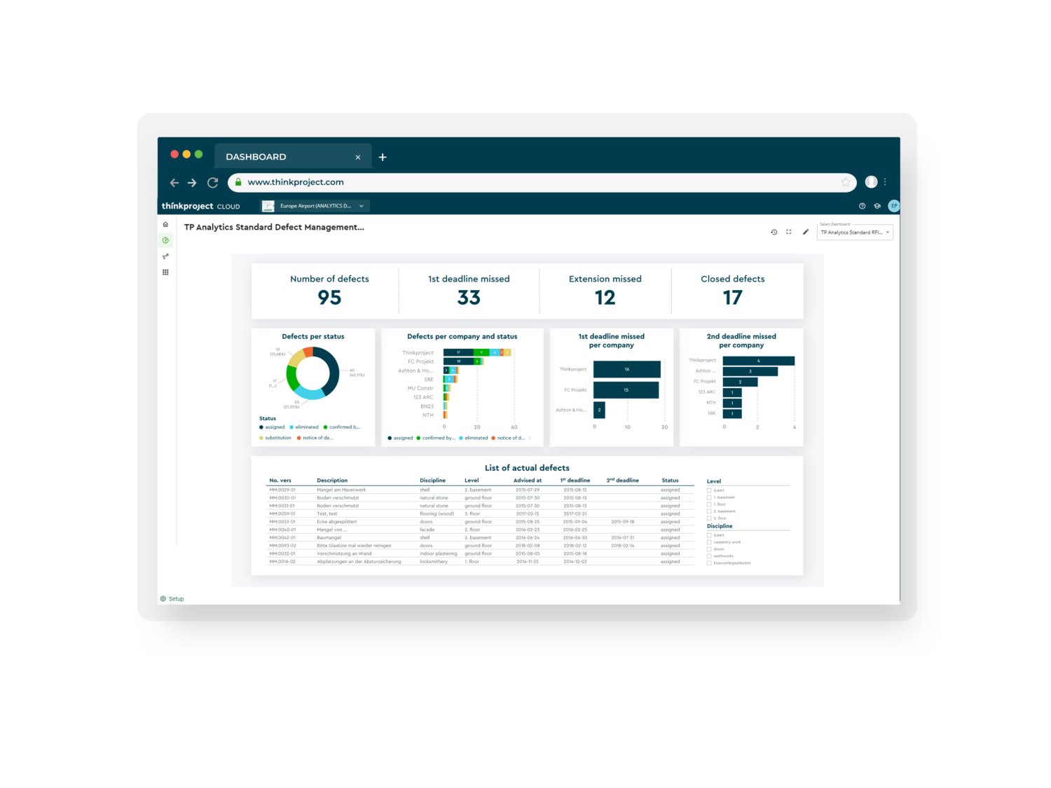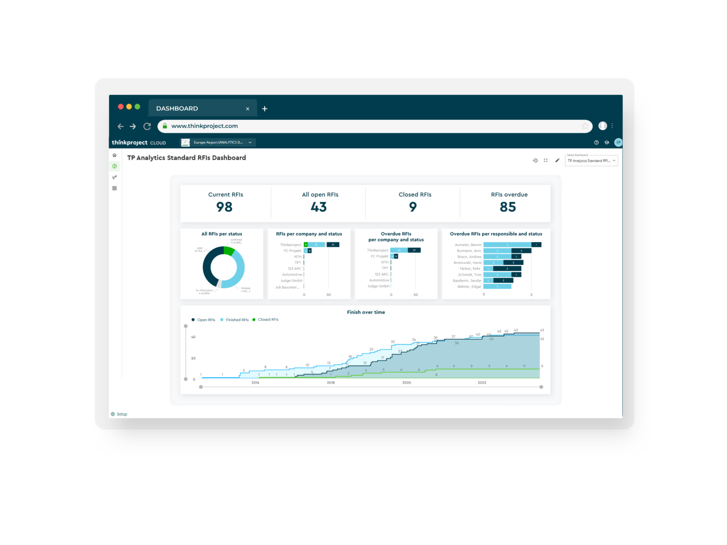 Thinkproject Analytics gehört zu den führenden Lösungen für die Datenanalyse und liefert Beteiligten auf allen Ebenen Informationen für Vorschriften und Vorhersagen. Führungskräfte und Projektmanager erhalten ebenso auf sie zugeschnittene Auswertungen wie Portfoliomanager und ausführende Teams.