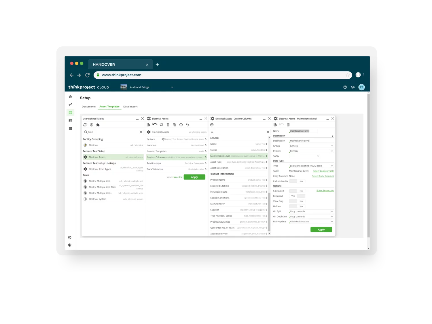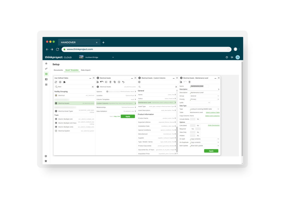 Der Übergang von einer Bauphase zur nächsten kann so einfach sein. Mit dem Thinkproject Handover Management übergeben Sie kontinuierlich validierte, genaue und umfassende Bestandsinformationen an die Asset Owner – genau in der Struktur, die deren Asset-Management-Lösung benötigt.