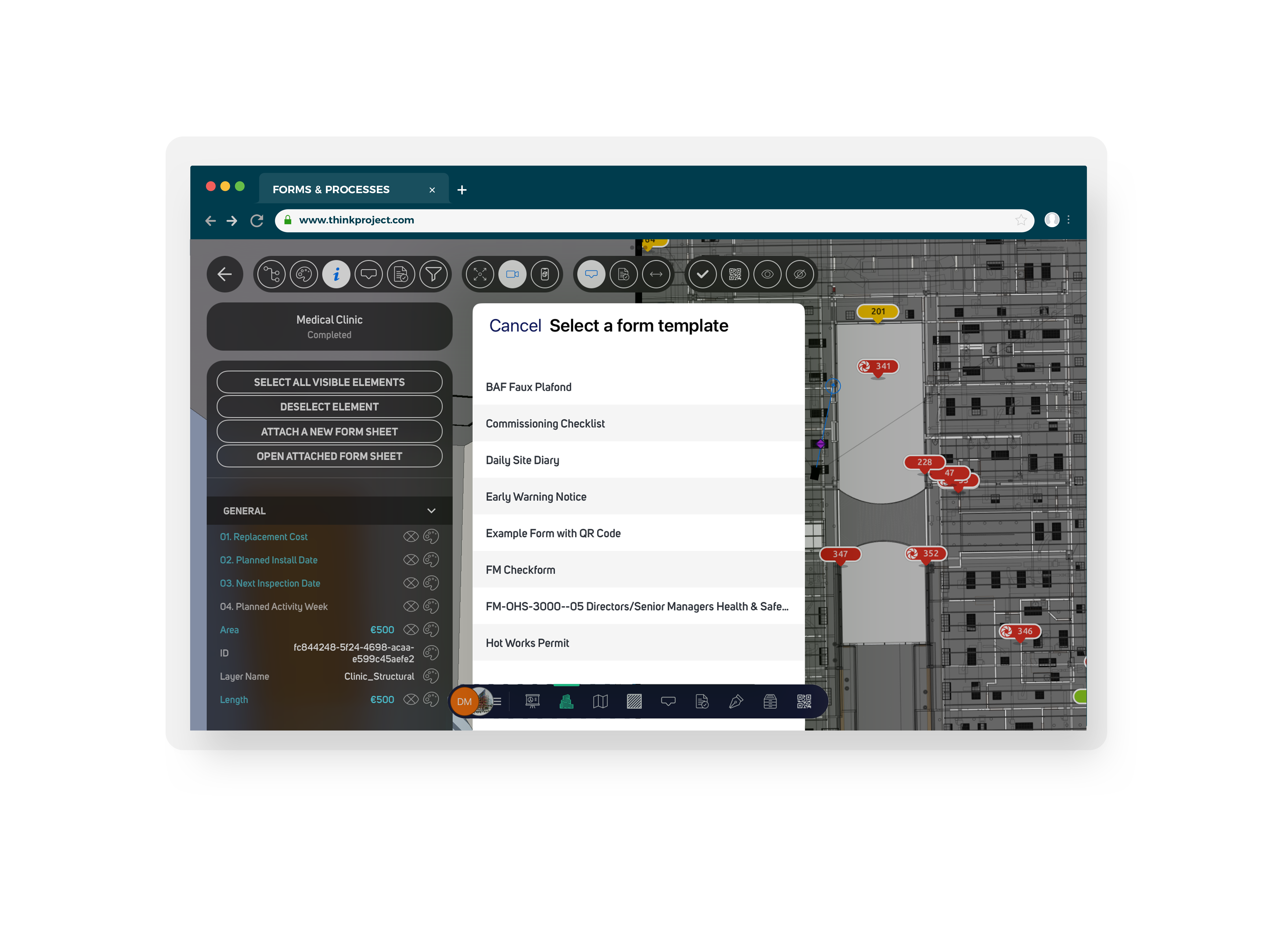 Konfigurierbare Workflows gewährleisten die Einhaltung von Standards. Ergänzen Sie BIM-Modelle und 2D-Pläne durch Dokumente und Anmerkungen, vereinfachen Sie die Mängelbearbeitung und sorgen Sie für Compliance bei allen Projekten.