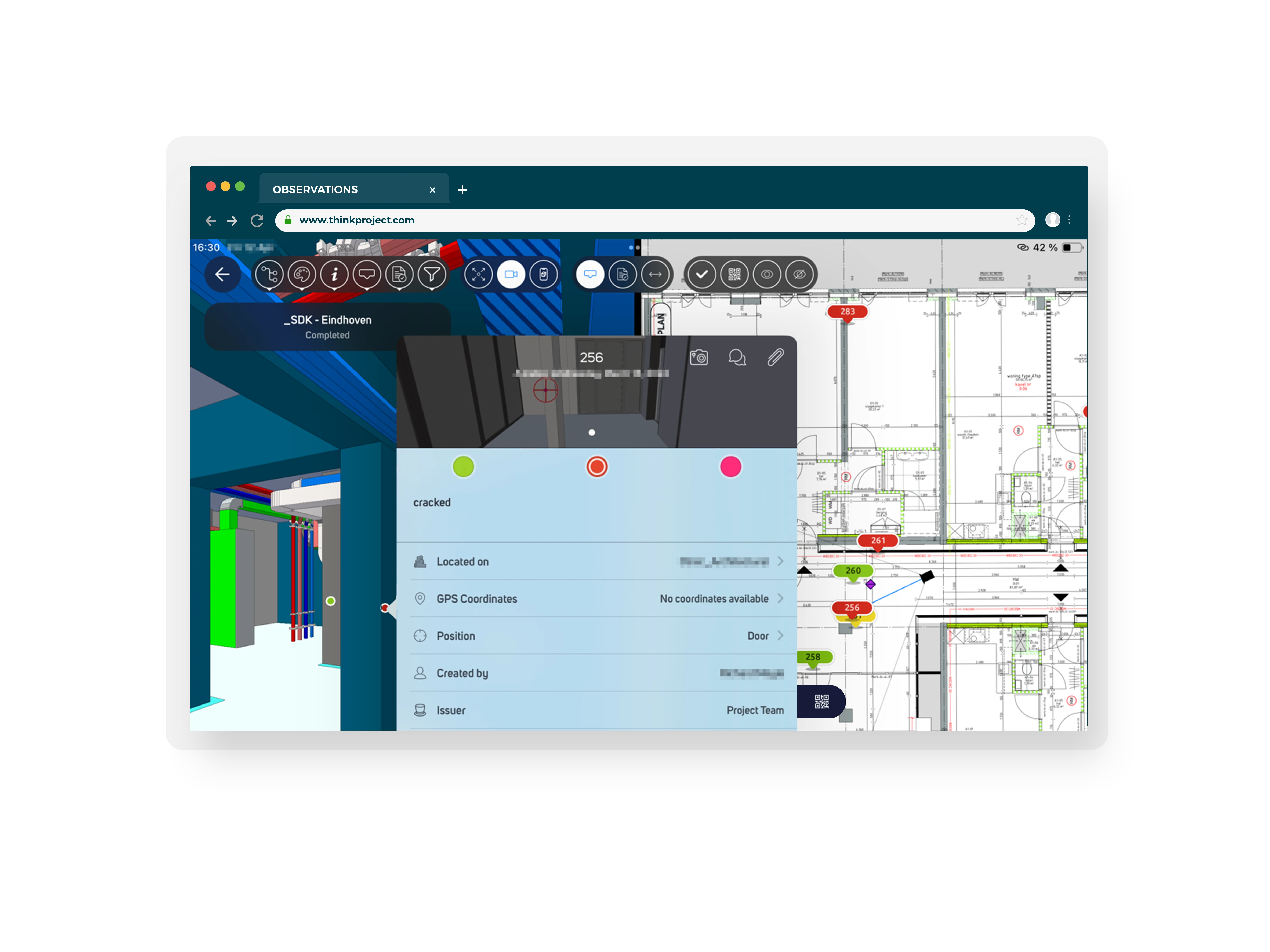 Dokumentieren Sie Beobachtungen und Mängel grafisch im BIM-Modell und im 2D-Plan, fügen Sie Kommentare hinzu und beschriften Sie Fotos mit Erläuterungen. Aufgaben lassen sich automatisch zuweisen, und mit Status-Workflows finden Sie die beste Lösung.