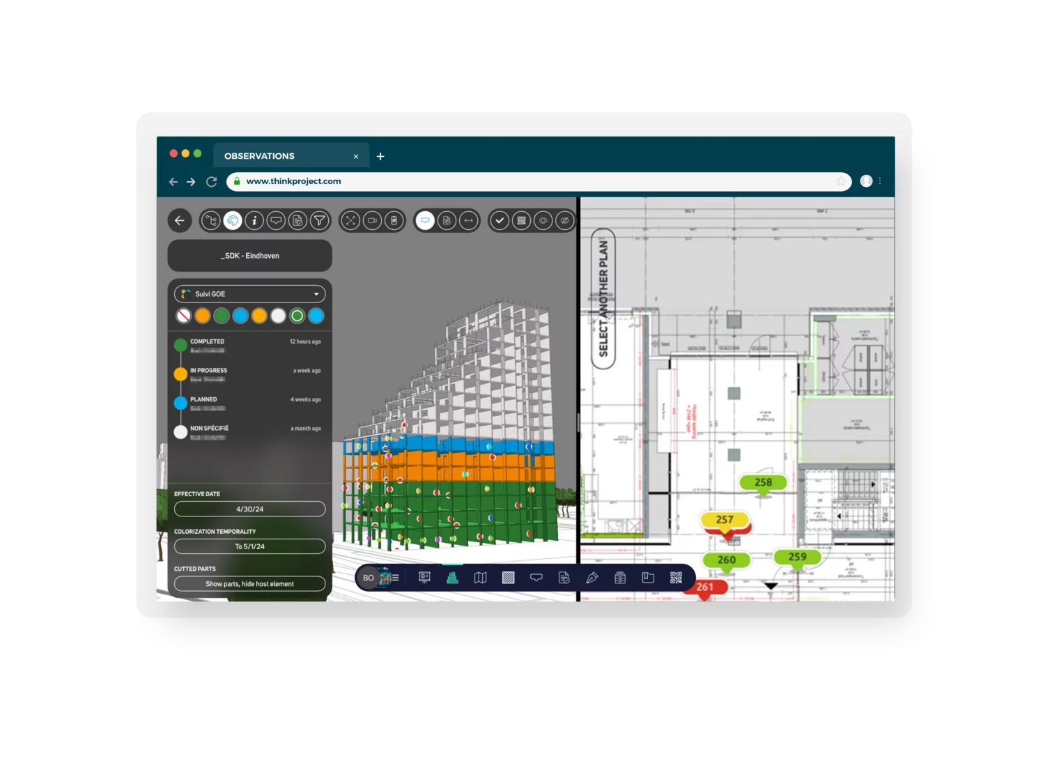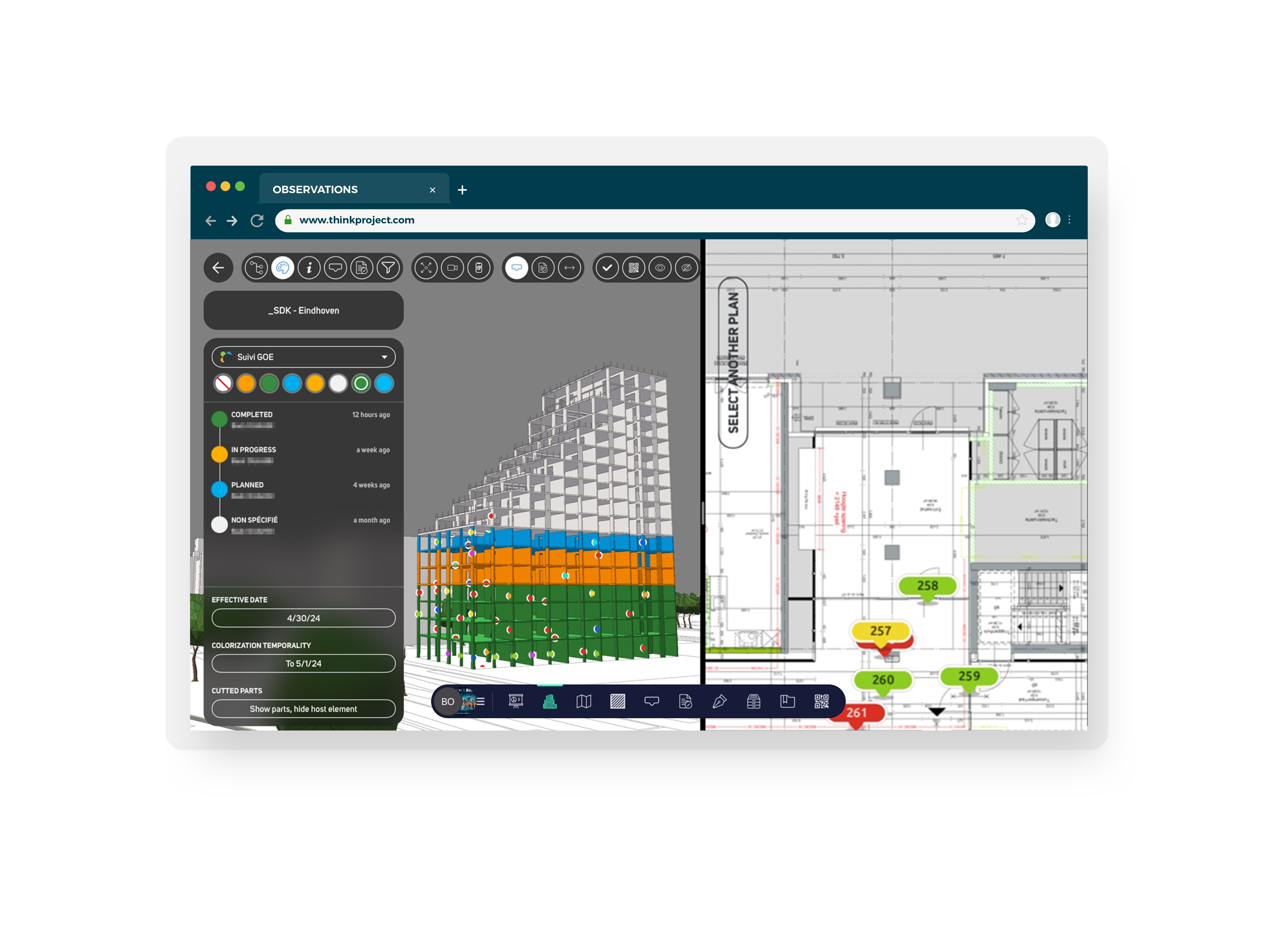 Affichez graphiquement les observations et les défauts sur des modèles BIM et des plans 2D, ajoutez des commentaires et annotez les photos pour les mettre en contexte. Attribuez automatiquement des tâches et configurez des flux de travail de statut pour une meilleure résolution, accessible sur ordinateur et smartphone.