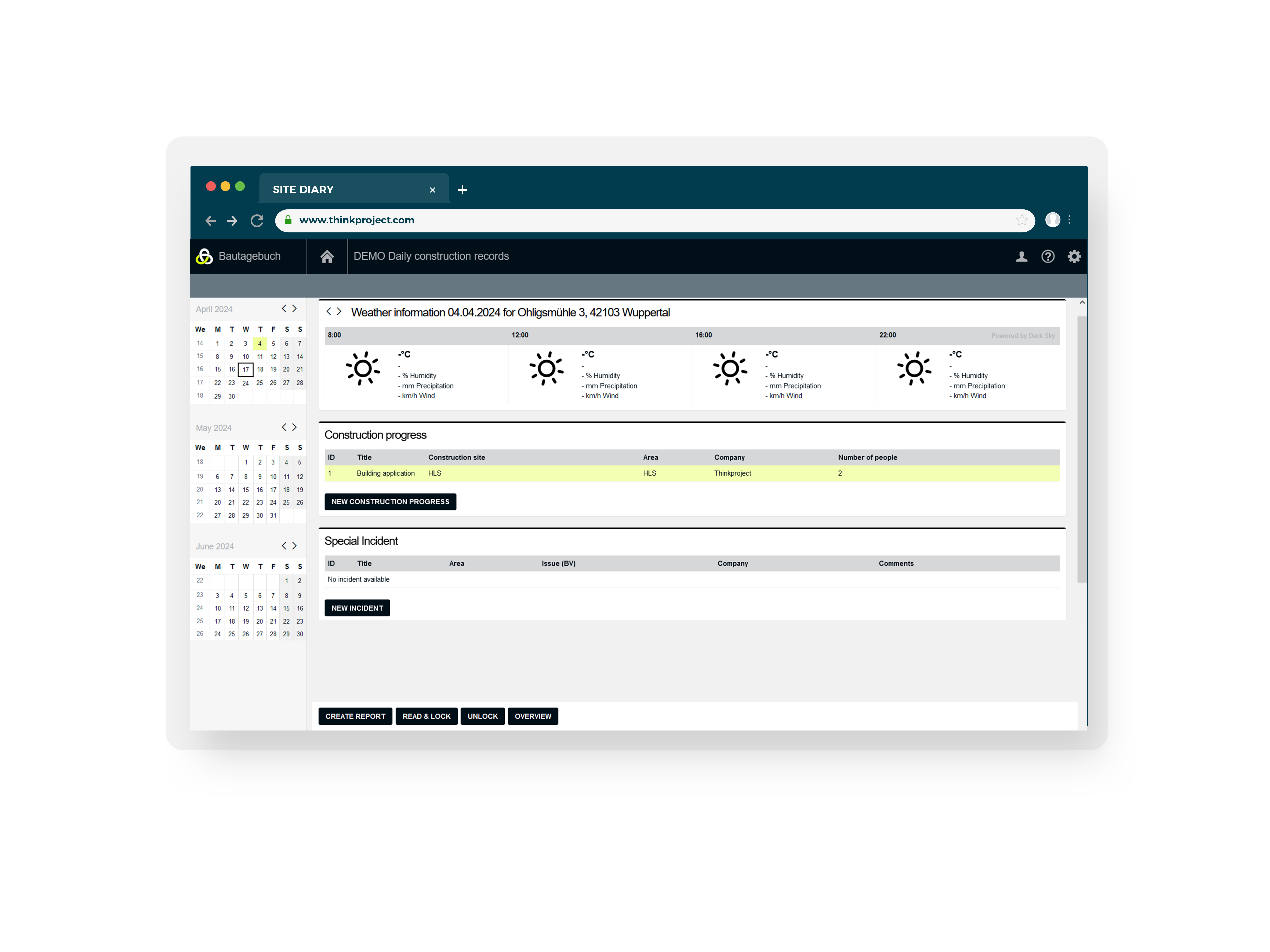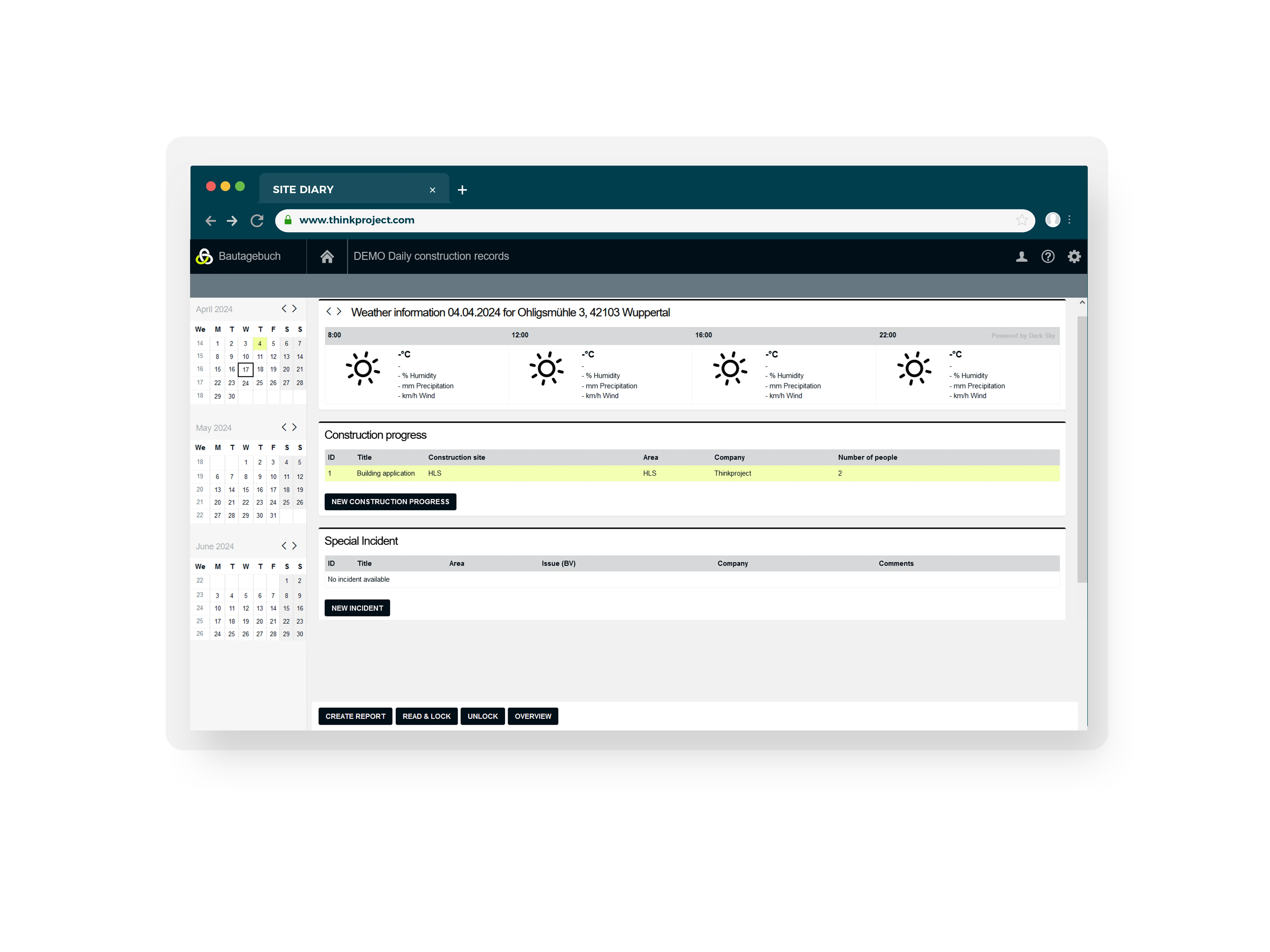 Importation automatique des données météorologiques du chantier du projet à jour intégrée dans le journal de chantier.