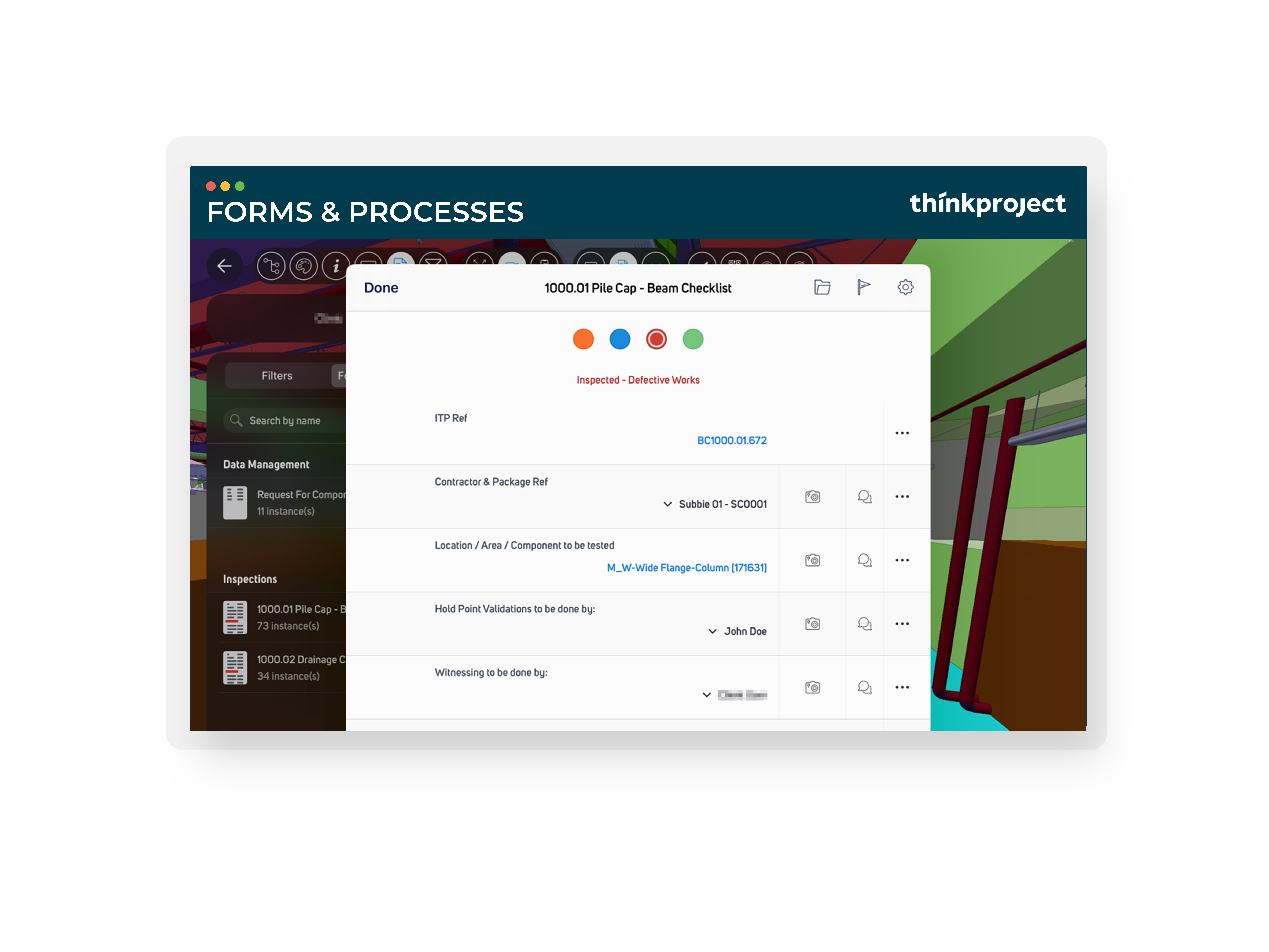 Personnalisez vos flux de travail pour garantir la conformité aux normes. Joignez des documents et des annotations aux modèles BIM et aux plans 2D. Facilitez les processus de résolution des contrôles défaillants et assurez la conformité continue de tous les projets.