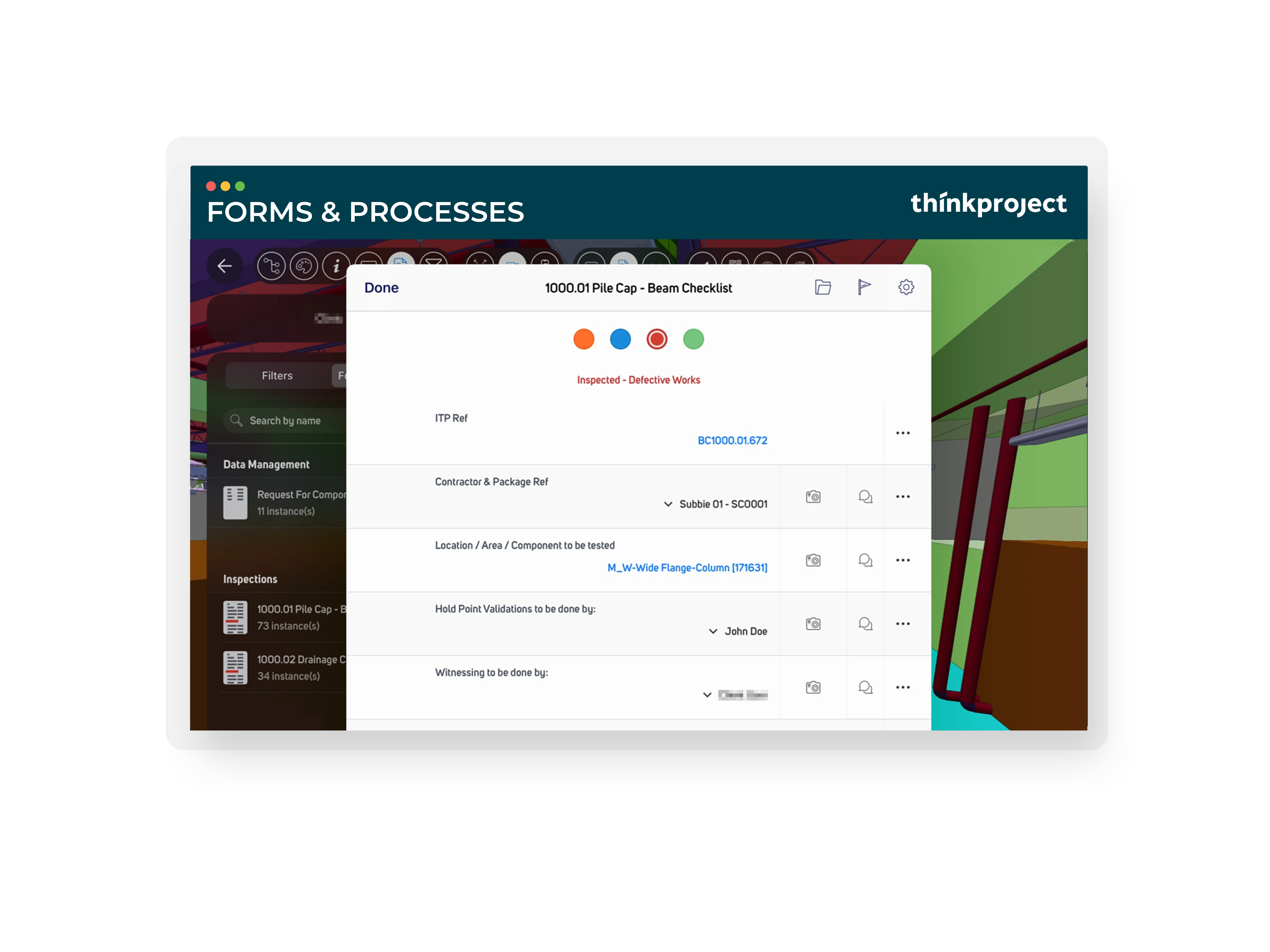 Personnalisez vos flux de travail pour garantir la conformité aux normes. Joignez des documents et des annotations aux modèles BIM et aux plans 2D. Facilitez les processus de résolution des contrôles défaillants et assurez la conformité continue de tous les projets.