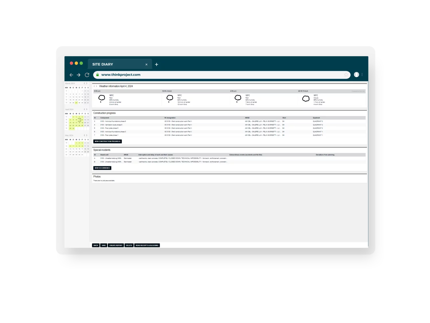 Importation automatique des données météorologiques du chantier du projet à jour intégrée dans le journal de chantier.
