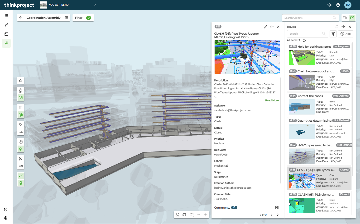Les solutions VDC de Thinkproject rationalisent la gestion de projet grâce à une collaboration fluide et à des conceptions exemptes d’erreurs, ce qui vous permet de gagner du temps et d’économiser des ressources. Grâce aux outils de conception, vous améliorez la communication entre les parties prenantes et évitez les erreurs coûteuses. L’accent que nous mettons sur le Contrôle de la qualité de la maquette numérique garantit la qualité et la conformité aux normes du secteur, garantissant la fiabilité des projets.