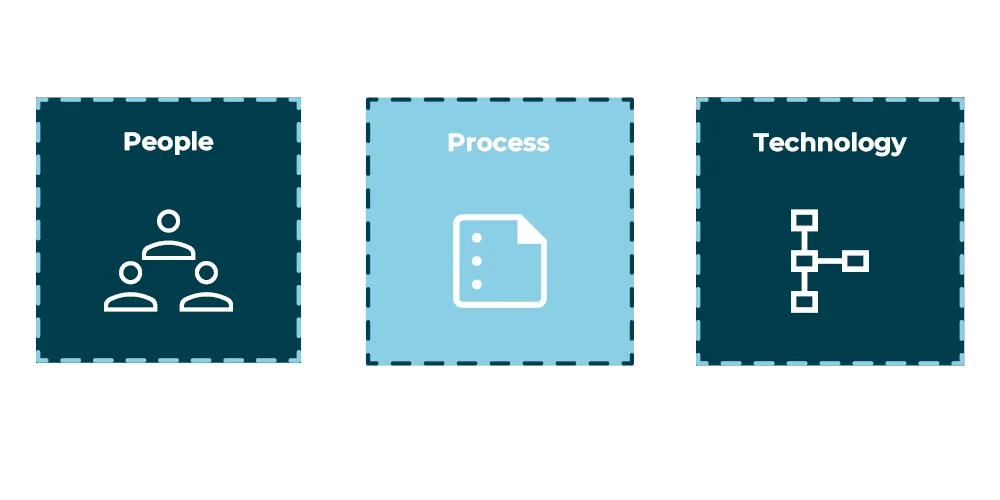 Identifying how people will solve business problems and achieve the desired result. Defined processes are the glue that holds together the various elements that lead to success when it comes to software implementation because software supports and follows processes.