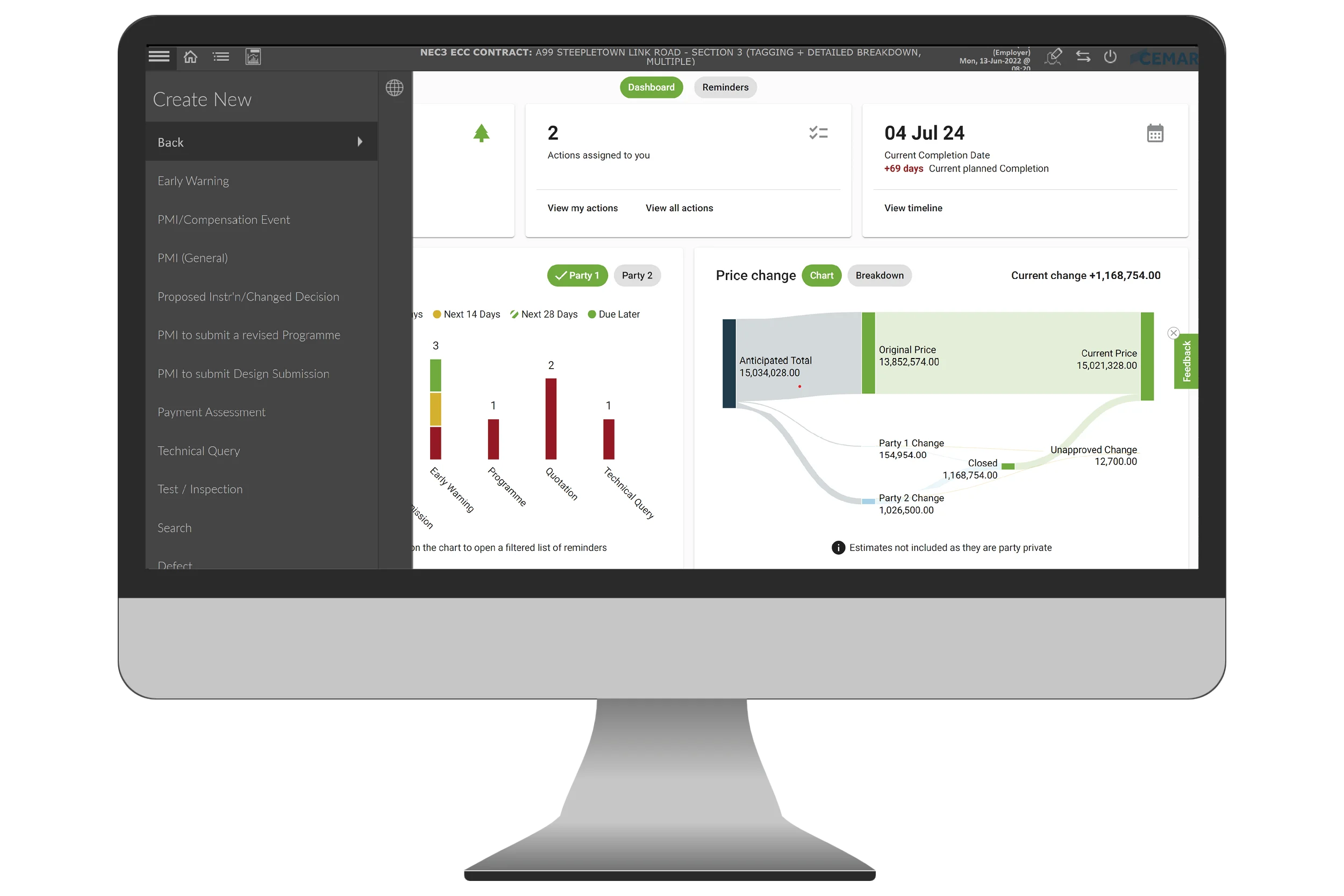 CONTRACTS is a dedicated contract management solution for NEC, FIDIC and other contract types. Created from a first-hand need to manage administrative demands, it has been developed by industry experts and practitioners and is acknowledged by name in all NEC4 contracts.