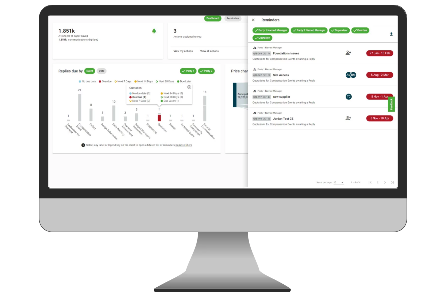 Achieve a collaborative single truth and cover a broad variety of contracting procedures including early warnings, compensation events, programme submission, payment and much more.