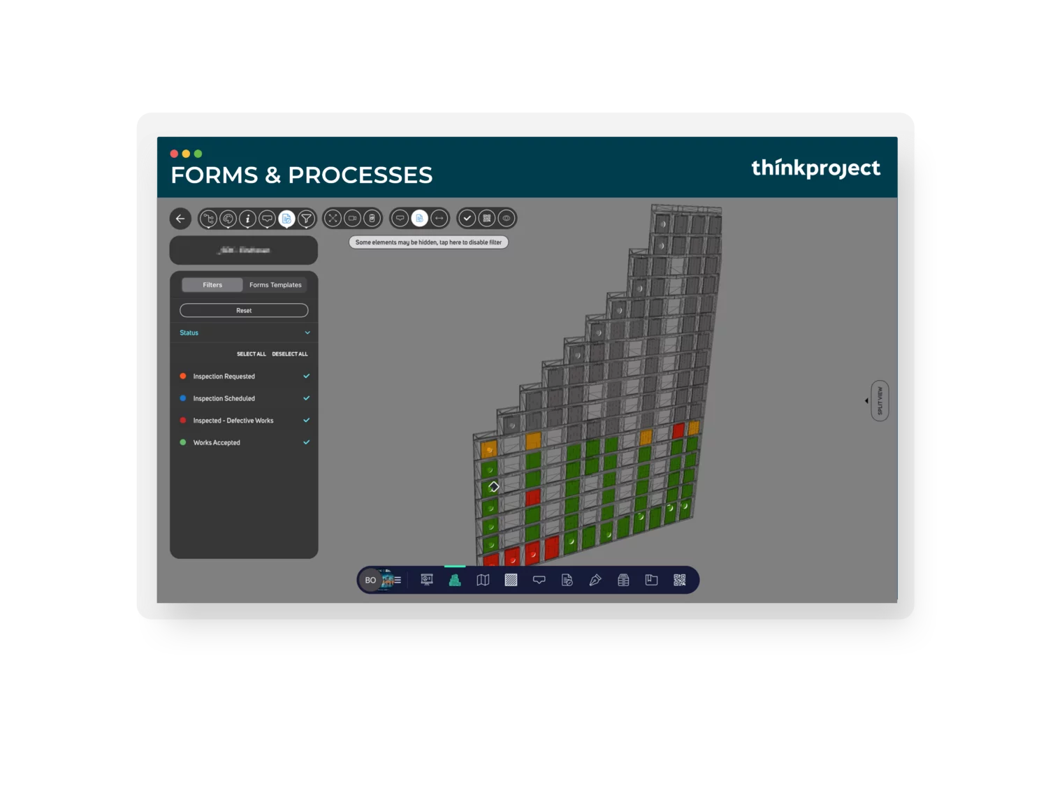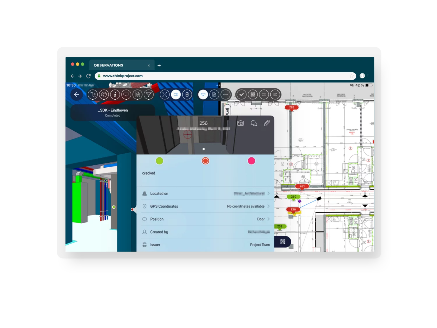 Position observations and defects graphically on BIM models and 2D plans, attach comments, and annotate photos for context. Auto-assign tasks and configure status workflows for better resolution, accessible on both desktop and smartphone.