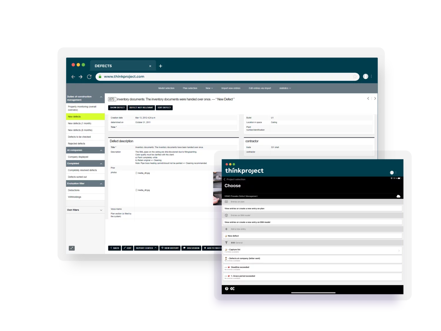 Improve defect processes with project-specific, legal workflows. On-site recording, automatic reports and full transparency via our mobile app keeps everything efficient and ensures proof of performance.