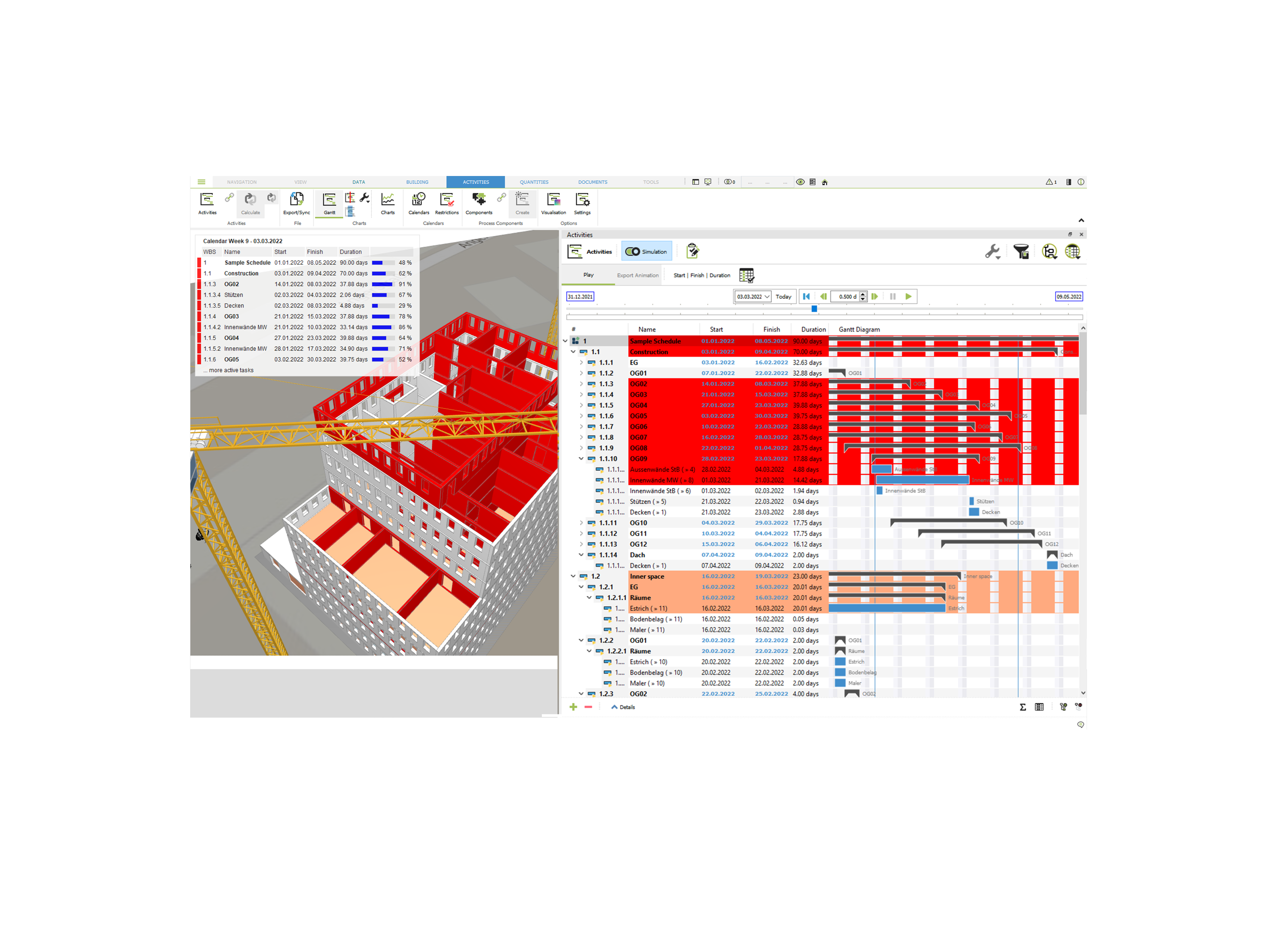 Facilitate better project management with comprehensive insights into project dynamics through 4D simulations, scheduling, controlling, quantity take-off and bill of quantities.